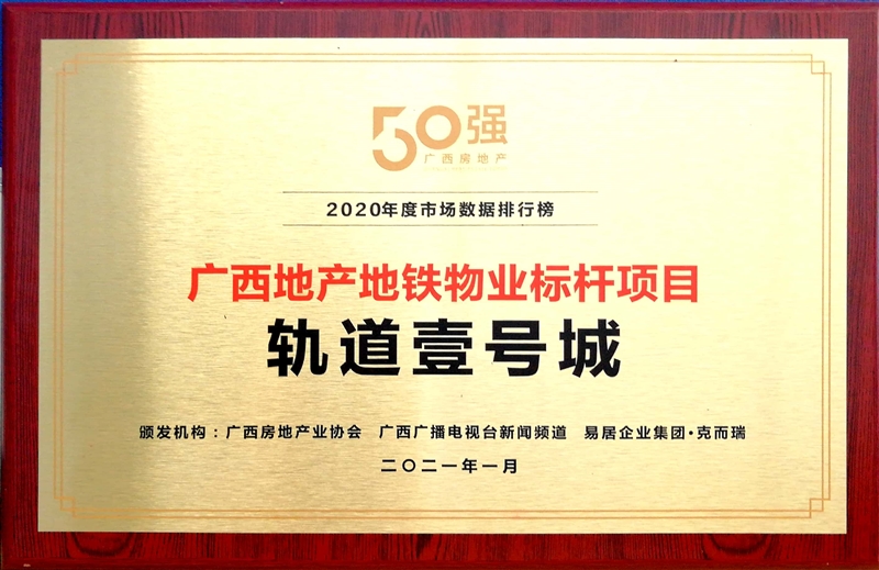 • 軌道壹號城獲得廣西地產(chǎn)地鐵物業(yè)標桿項目稱號