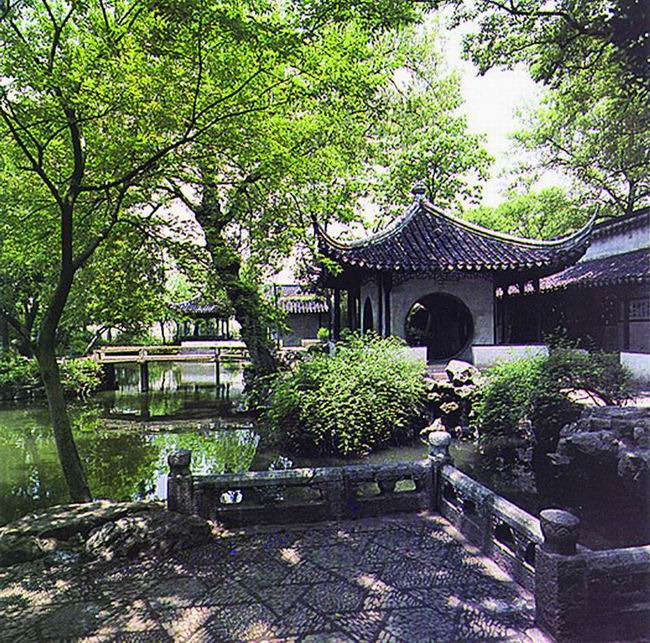 拙政園始建于明正德四年(公元1509年)。它雖經(jīng)過幾百年的蒼桑變遷,但這里處處山水明秀,廳榭典雅,花木繁茂,漫步在其中,你仍能感受到其平淡疏朗、曠遠明瑟的明代氣息,游過全園,給我印象最深的是位于中部花園的最東面的"梧竹幽居",這里造型非常別致,四個大大的圓洞門使人馬上聯(lián)想起八月十五晚上的月亮。而更神奇的是如果你站在亭子里向外看,這四個圓洞門又恰似四個巨大的鏡框,鑲嵌著蘇州園林一年四季的風(fēng)光。