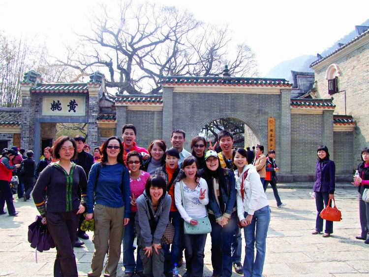 第三日清晨,整裝待發(fā)八點(diǎn)前往黃姚古鎮(zhèn)。賀州是粵東的一座新興城市,而黃姚,卻有著近千年的厚重。從古鎮(zhèn)入口前左邊的一條岔路走進(jìn)去,首先觸目的便是一條清澈的小溪、一棵參天的古榕樹,我們開始細(xì)細(xì)觀賞這個(gè)小鎮(zhèn)。古榕的軀干伸向小溪,又從空中垂下縷縷氣根,與水中的倒影連為一體。溪邊水井里清可見底,偶有小魚游動(dòng)。據(jù)說(shuō)黃姚是按九宮八卦陣式布局,鎮(zhèn)上的石板街有8條,共99999塊青石板,最早鋪砌于清順治年間。年代久遠(yuǎn),不知有多少人走過(guò),青石板已被磨得像鏡子般光滑,隱約泛著人影。橋下的姚江,如今看水依舊清碧,可是繁華不再,顯赫的牌匾也只能靜靜地訴說(shuō)著昔日的輝煌。石板路的小村落很安靜,人們過(guò)著日常的生活,村婦們?cè)诰^溪邊,淘菜洗衣,交流信息,菜渣、閑話都隨溪水流去,并不對(duì)外來(lái)的游客有格外的好奇。孩子們快樂地嬉戲著,在那些蜿蜒的巷子里不時(shí)冒出他們快樂的喧嘩。宗祠府第這樣的舊時(shí)輝煌不經(jīng)意地散布于鎮(zhèn)上的民居之中,亭閣前的聯(lián)匾,記錄著文人騷客對(duì)黃姚的鐘愛,只是年代遠(yuǎn)去,如今物是人非。陽(yáng)光下的青石板路上有時(shí)候也會(huì)躺著狗或者貓,你從它們身上跨過(guò)去的時(shí)候,它們會(huì)懶懶地翻翻眼皮,然后繼續(xù)睡在陽(yáng)光里。雞們顯得勤快些,會(huì)邁著方步走在你前面東看看西瞅瞅,如果你不急,它會(huì)一直走在你前面,時(shí)間對(duì)它們沒有任何意義。還有那些老房子,任何一座都可能藏著一個(gè)故事。結(jié)了蛛網(wǎng)的窗欞恐怕已有了幾百年的歷史,但是沒有人把這當(dāng)成了不得的事情,一切如常,平靜隨意。