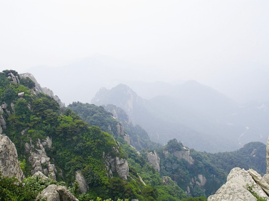 我們的行程很快,在下纜車后迅速到達(dá)南天門開始向玉皇頂進(jìn)發(fā),然后終于來到了向往已久的泰山摩崖石刻處。作為泰山的標(biāo)記之一,站在《紀(jì)泰山銘》的刻石下面,仰望這部唐玄宗的"封"山之作,頓時覺得自己十分渺小,泰山獨有的莊嚴(yán)神圣和巍峨磅礴撲面而來,讓我完全拜服于泰山的獨特魅力之中。隨后我們登上了泰山之巔--玉皇頂。在玉皇頂回身俯視天地,終于在課本之外親身體會感受到杜甫"會當(dāng)凌絕頂,一覽眾山小"這句千古絕唱的韻妙之處,也真切的領(lǐng)會到"登泰山而小天下"的無與倫比的雄偉霸氣所在。